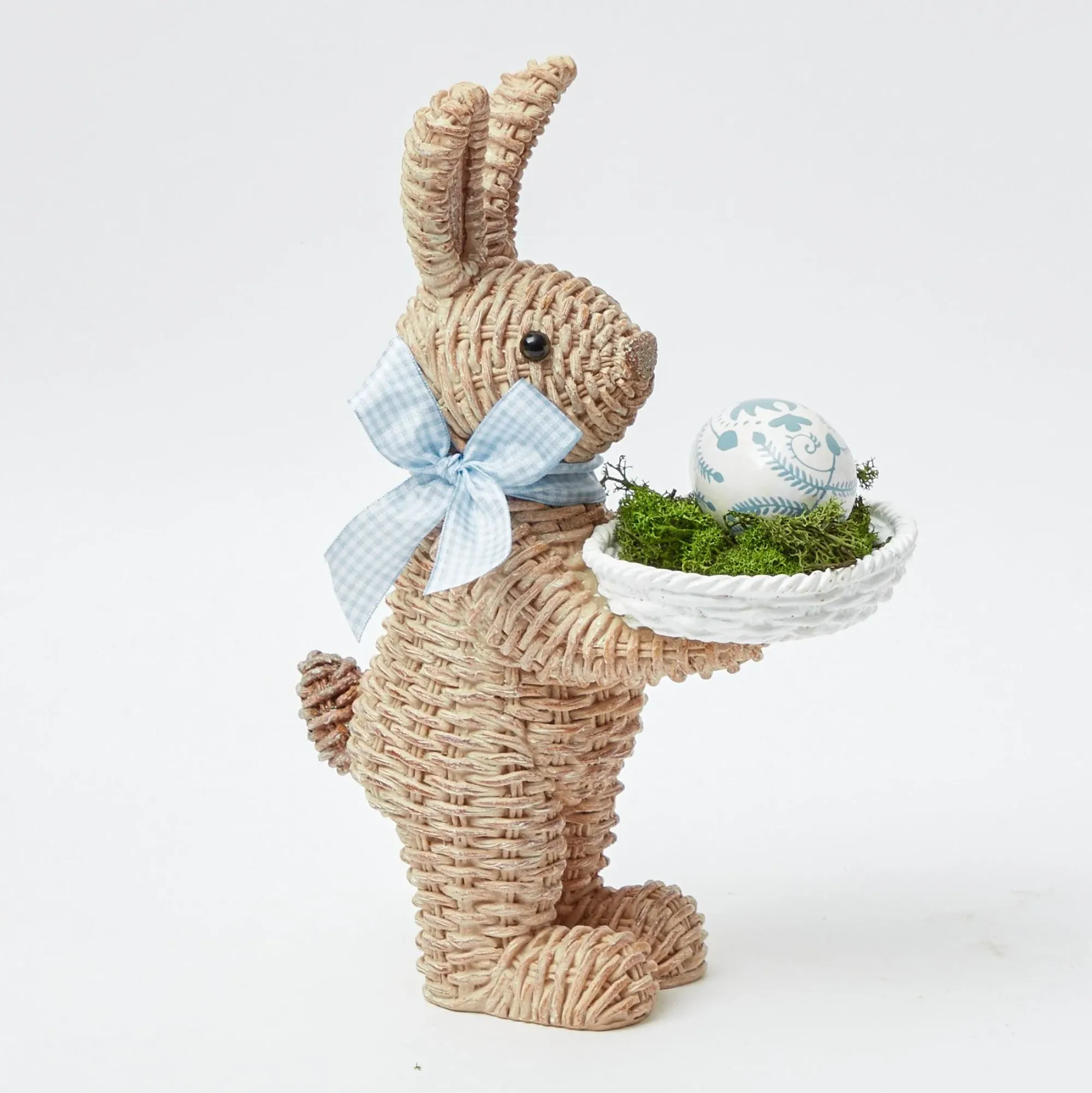 Our Charming And Very Jolly Natural Rattan Rabbits Come With Pretty Blue Ribbons And A Basket For Putting Our Beautiful Decorative Hand Painted Easter Eggs In.Founder Alice, Whose Main Food Group Is Sweets And Candy Also Likes To Fill These With Cadbury’s Mini Eggs… Size: 37Cm X 19Cmmaterial: Rattan Resin