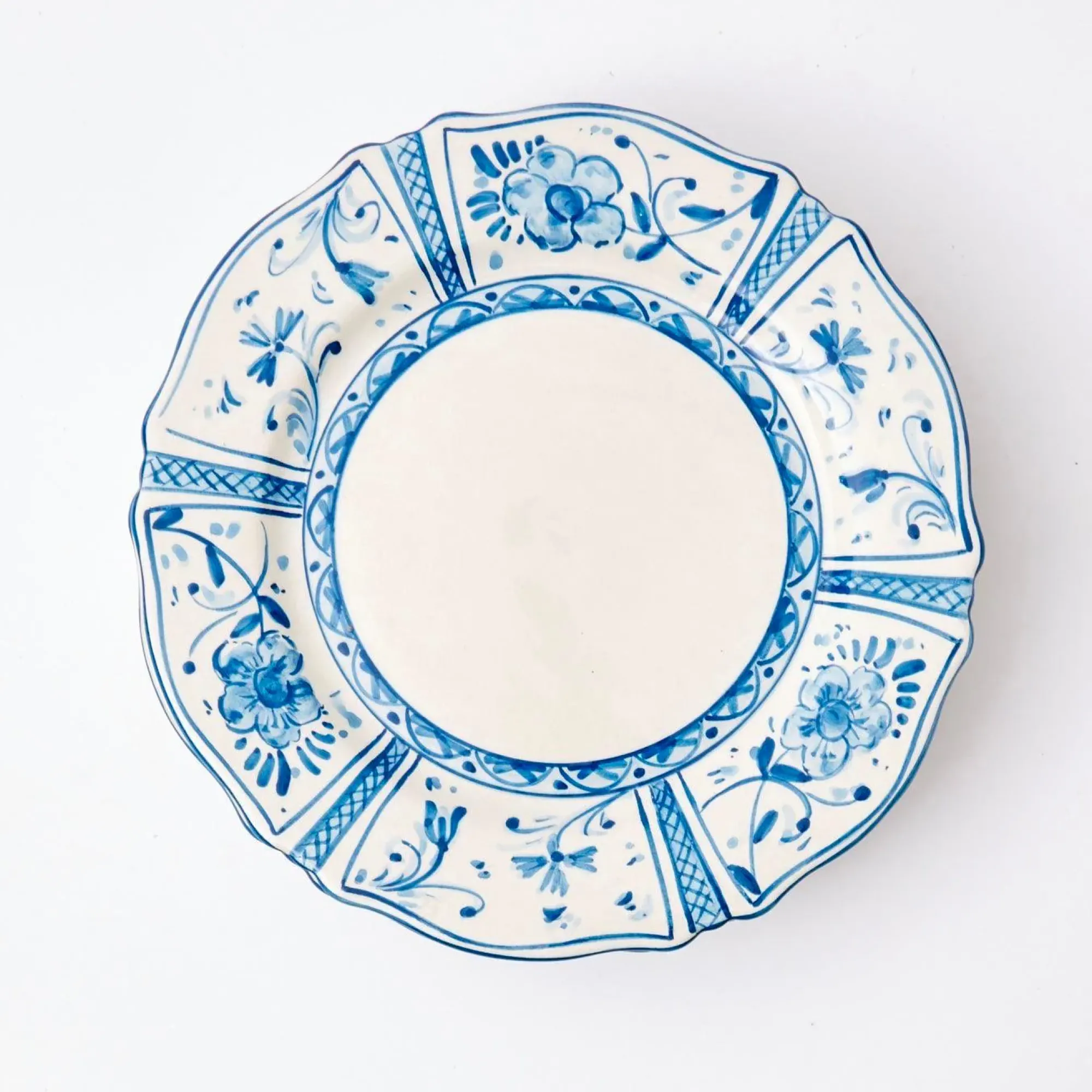 This Delightful Blue Ceramic Dinner Plate Comes With A Classical Hand Painted Floral Design And Gentle Scalloped Edge.Hand Made Exclusively By Artisans In Southern Spain These Pretty Plates Work Best When Laid With Ourbaroque Harvest Tablecloth, Agatha Blue Linens & Burnt Bamboo Cutlery.Product Size: 26 Cm Diametercare Instructions: Dishwasher Safe