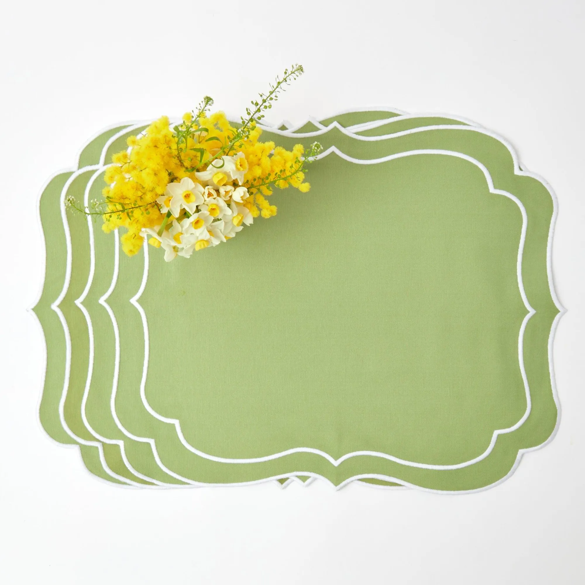 Sylvie Green Embroidered Placemats (Set Of 4)|Mrs. Alice Outlet